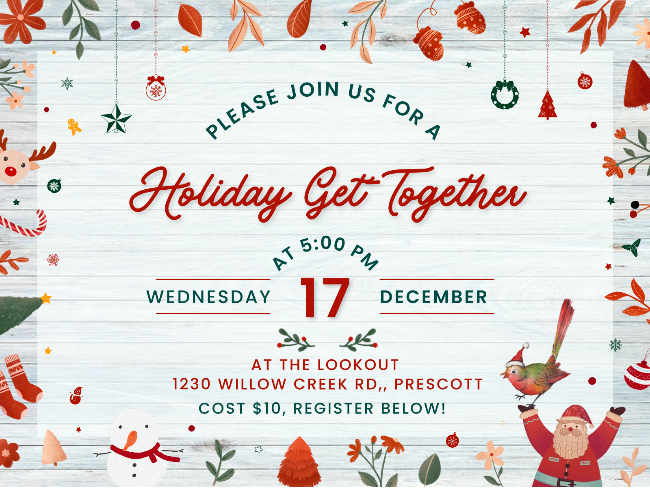 Just in case you missed this in our December newsletter, we're having a Holiday Get-Together on December 17th, after our Prescott Christmas Bird Count.